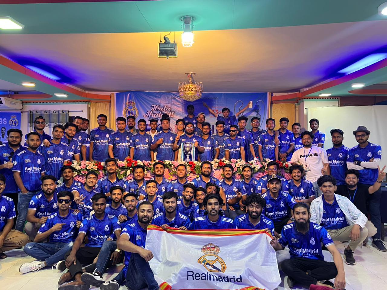 After an engaging quiz session, a grand anniversary cake was cut, symbolizing unity, pride, and love for Real Madrid. The hall was filled with chants of “Hala Madrid y Nada Más” as supporters celebrated like one big family. The event concluded with group photos, laughter, and memories that will last a lifetime.
